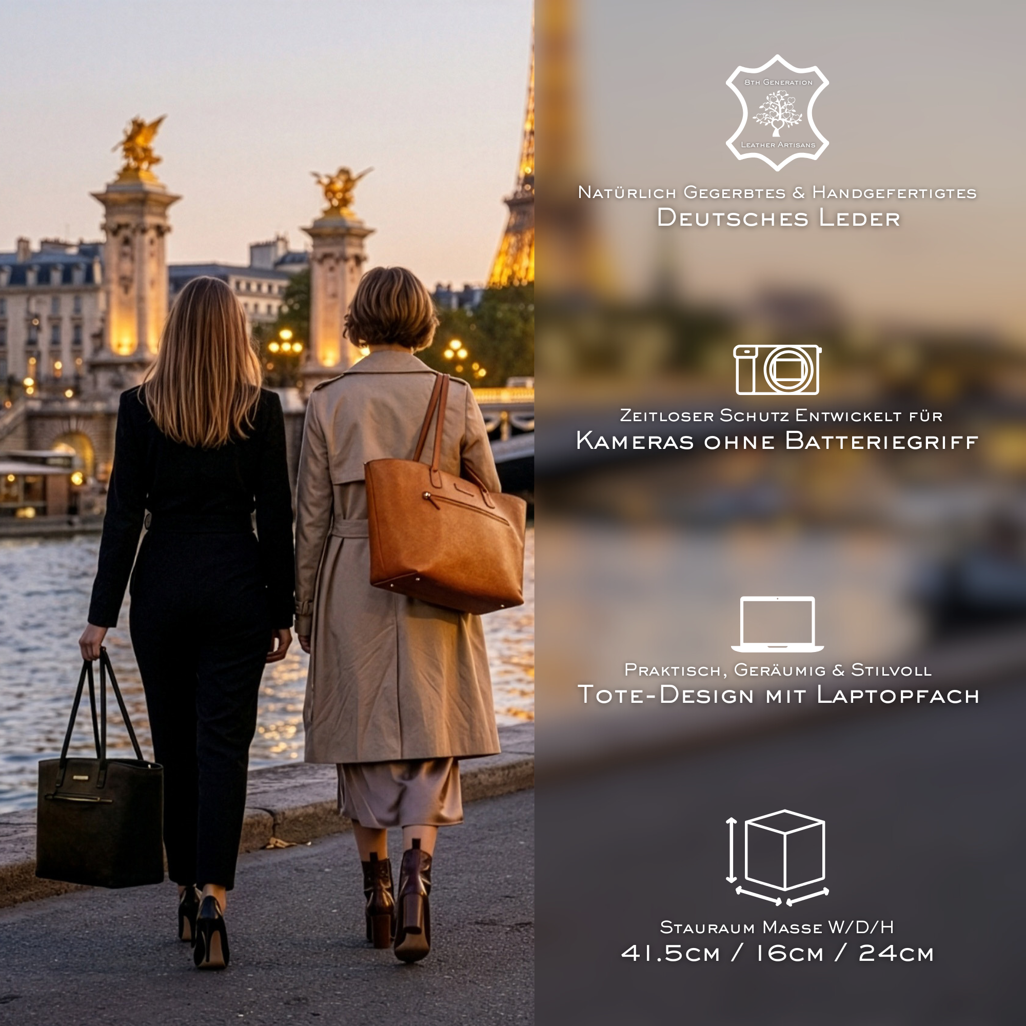 Handmade shoulder bags with camera compartment made from the finest German leather - ideal for a timeless, classic look