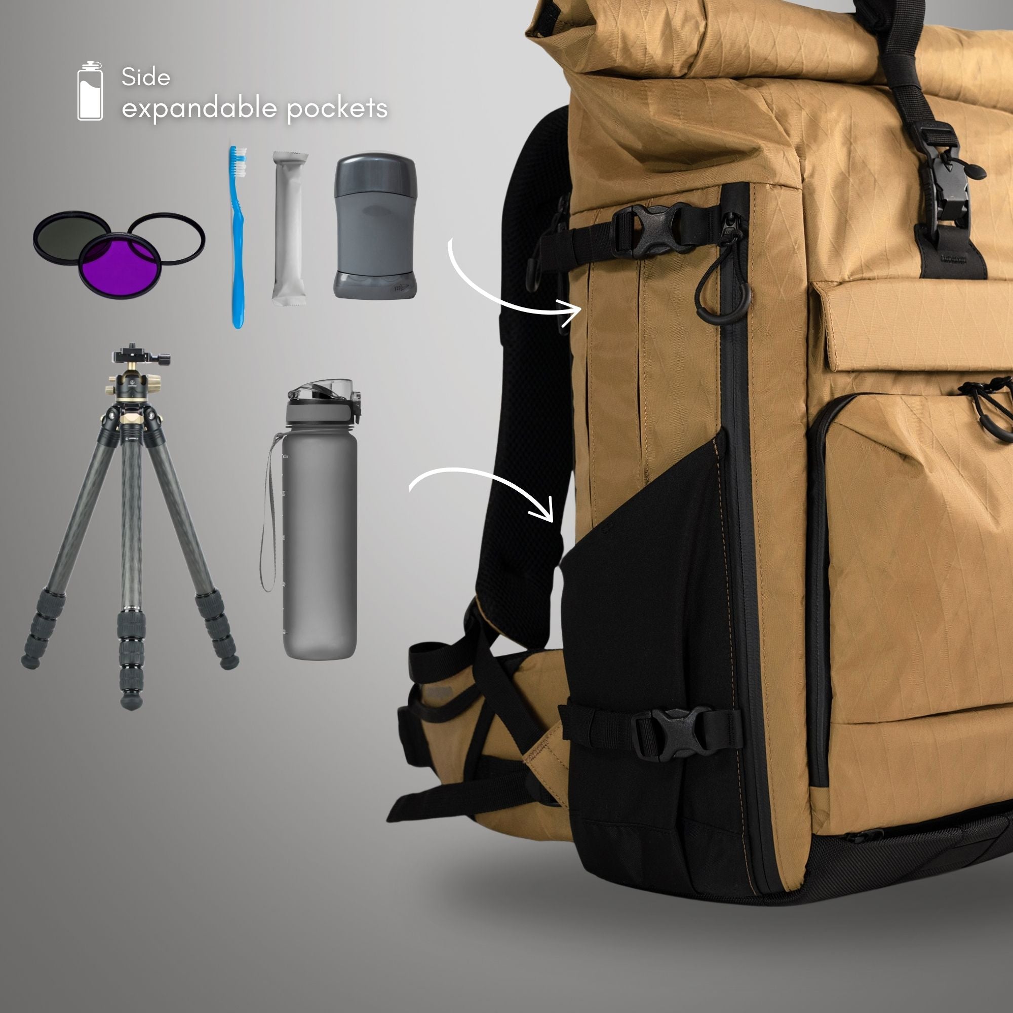Should you require more storage space for additional travel luggage or even bigger cameras, lenses, etc., there is the Element backpack 30L.