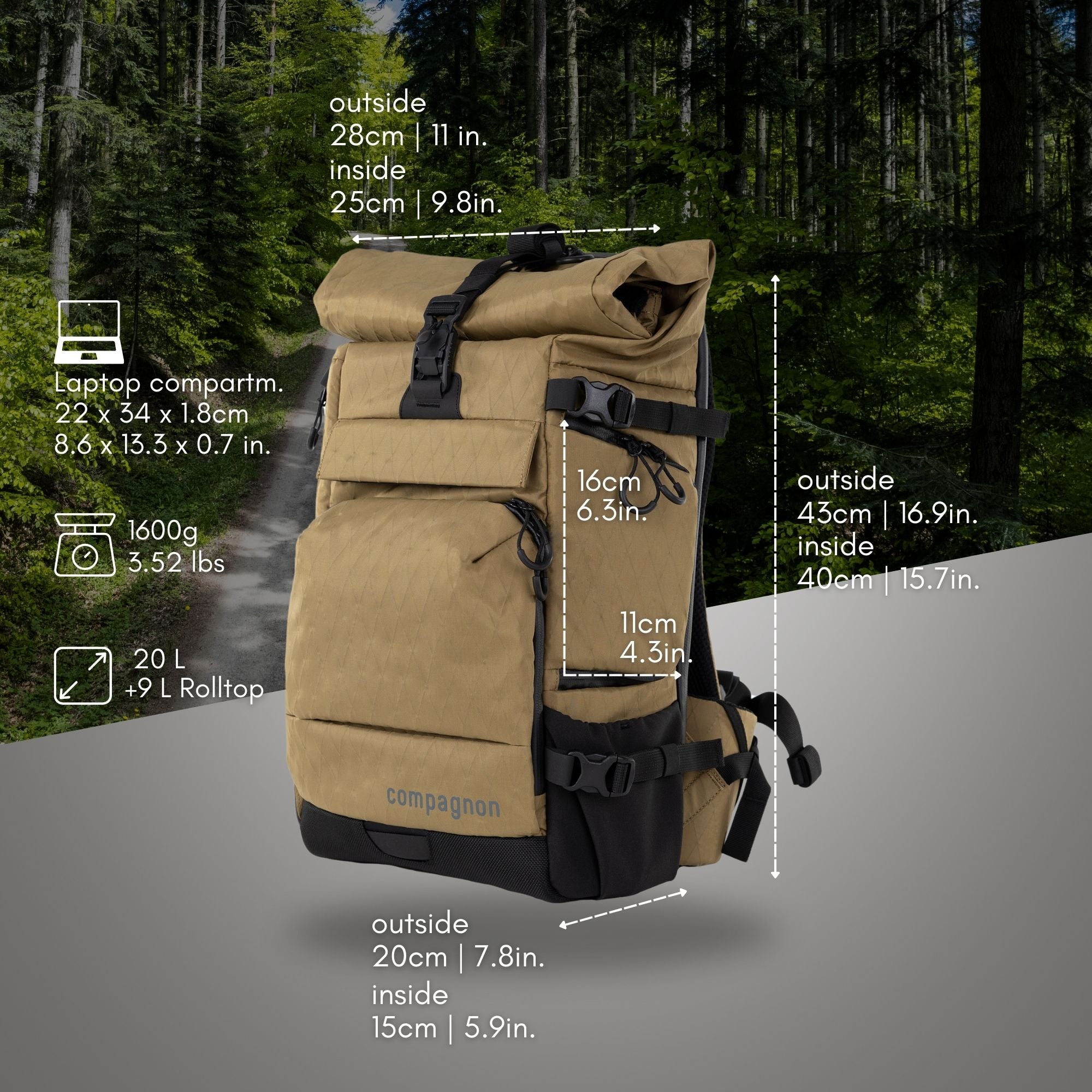Especially if you tend to avoid bulky, excessively heavy equipment to reach your goals as relaxed as possible, the Element backpack 20L offers a top-notch balance of versatile, generous storage space and yet compact, handy dimensions.