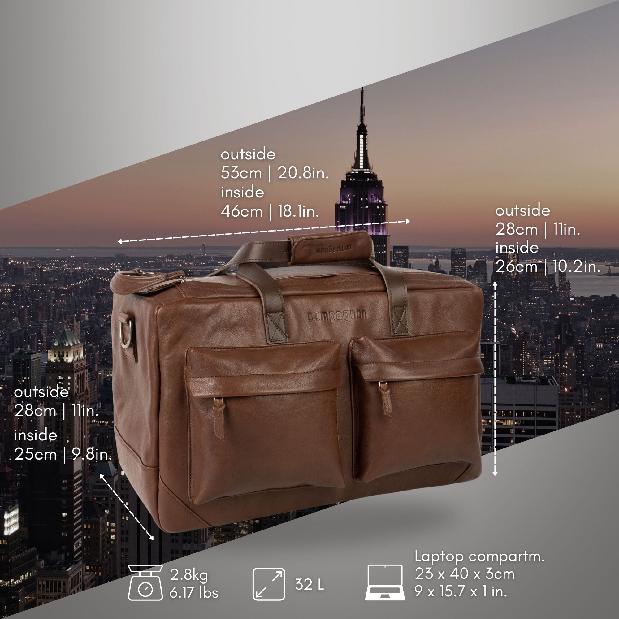 From the outside, the compagnon weekender looks like a casual duffle travel bag that is stylish & never out of place.