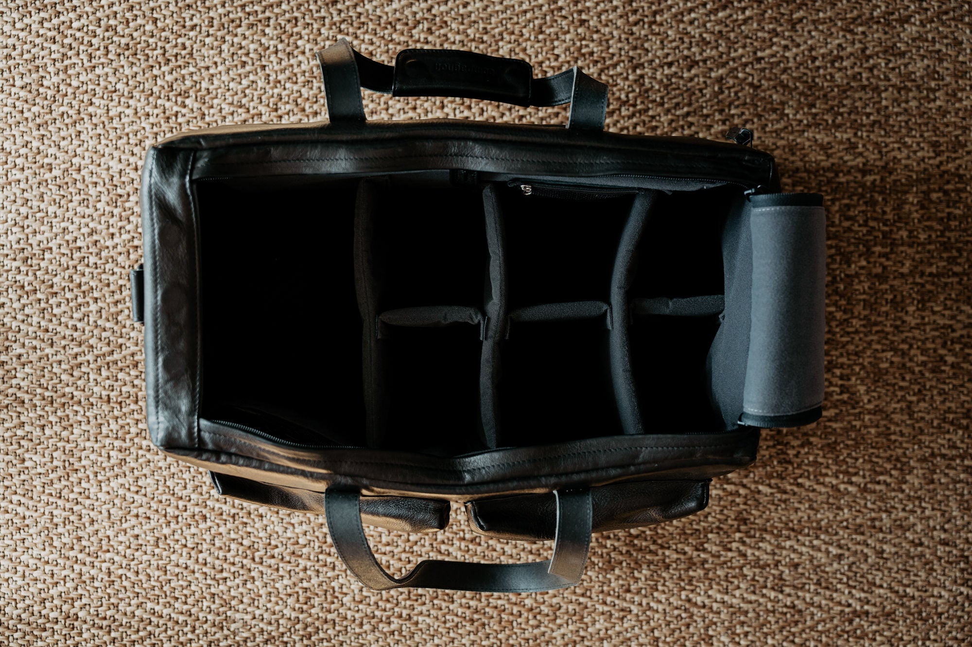 A dapper travel duffle handmade from the finest natural leather is something special. Once there is a camera gear to be added to clothes and shoes, organization inside the bag is usually a mess.