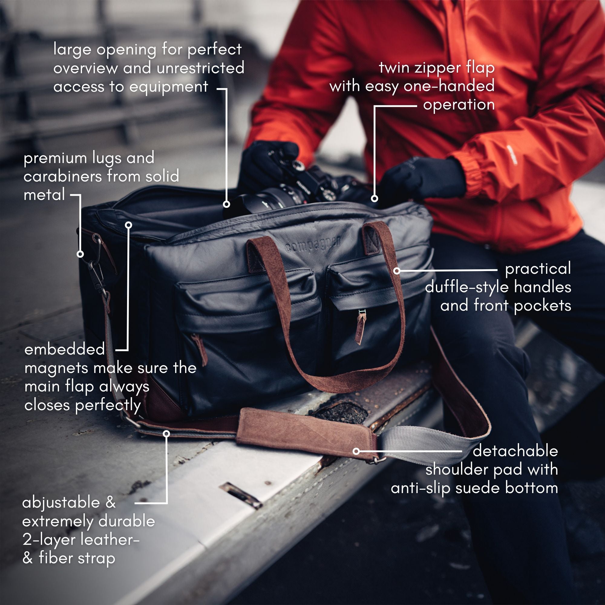 Our most majestic carry-on camera leather bag, perfect for traveling and big projects.