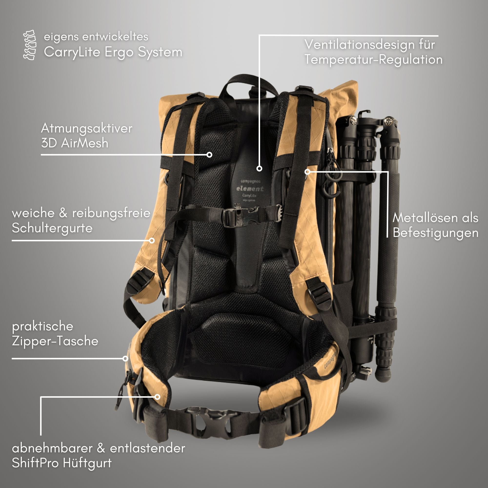 The Element backpack is therefore designed around a specially developed carrying system that is unique among camera backpacks.
