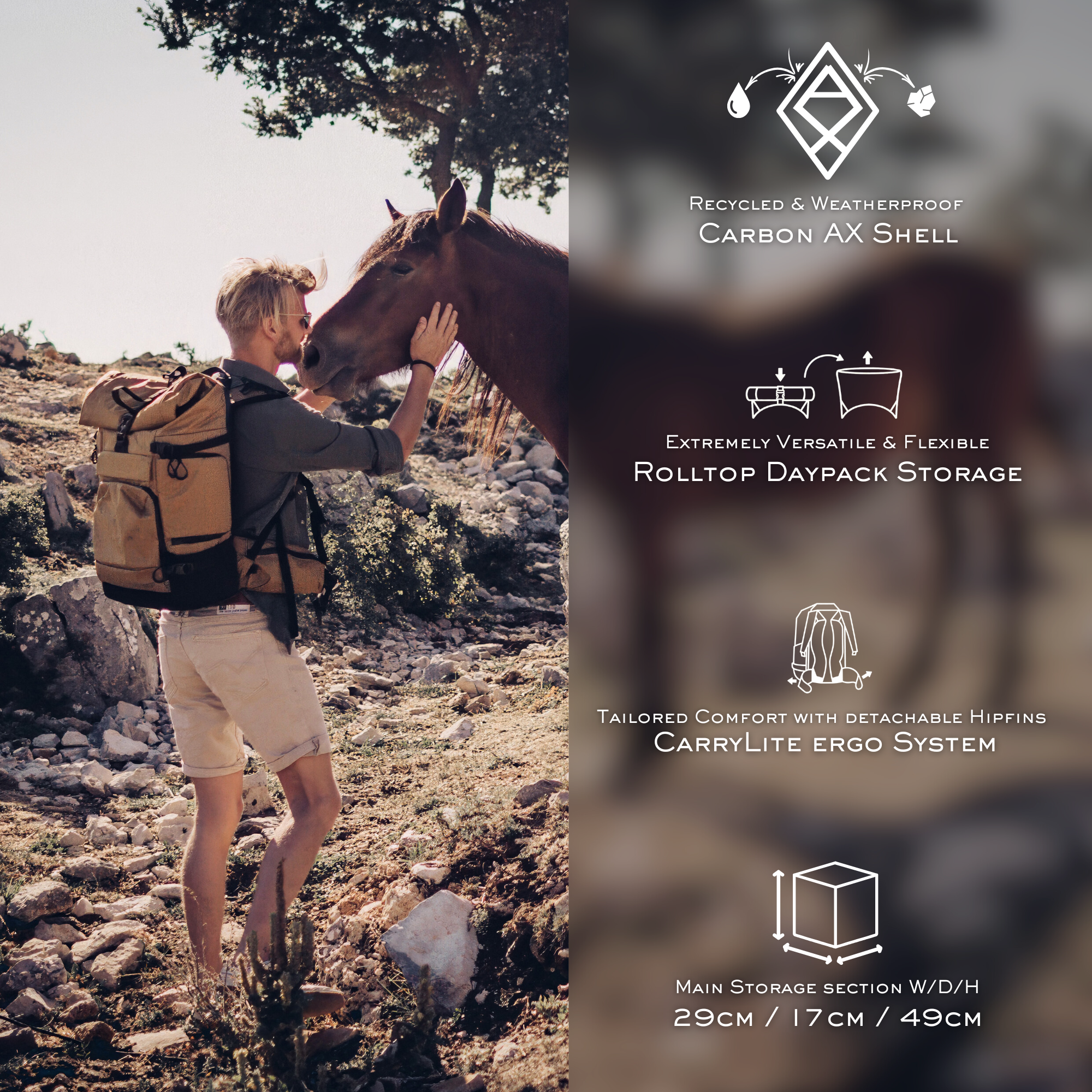 carrying system developed by us for uniquely back-friendly comfort on a camera backpack. Supplemented with practical features & premium materials.