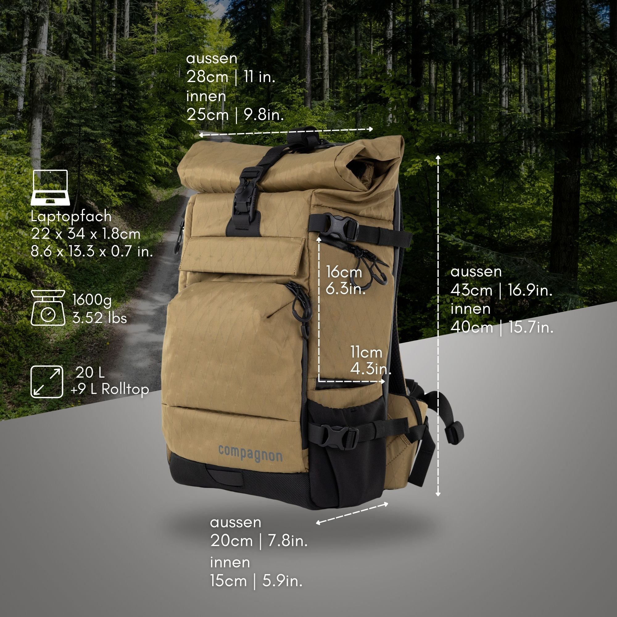 Por supuesto, es difícil evaluar sus necesidades. Por eso, aquí encontrarás siempre todas las dimensiones del espacio de almacenamiento. Las mochilas Element se diferencian por su sistema de espalda. La versión de 20L es más estrecha y corta, por lo que es ideal para personas menudas de 1,75 metros de altura o menos. Para las personas con una columna vertebral más larga, recomendamos encarecidamente la versión de 30L, aunque no necesites tanto espacio de almacenamiento. Una mochila sofisticada con sistema de transporte debe ante todo ajustarse.