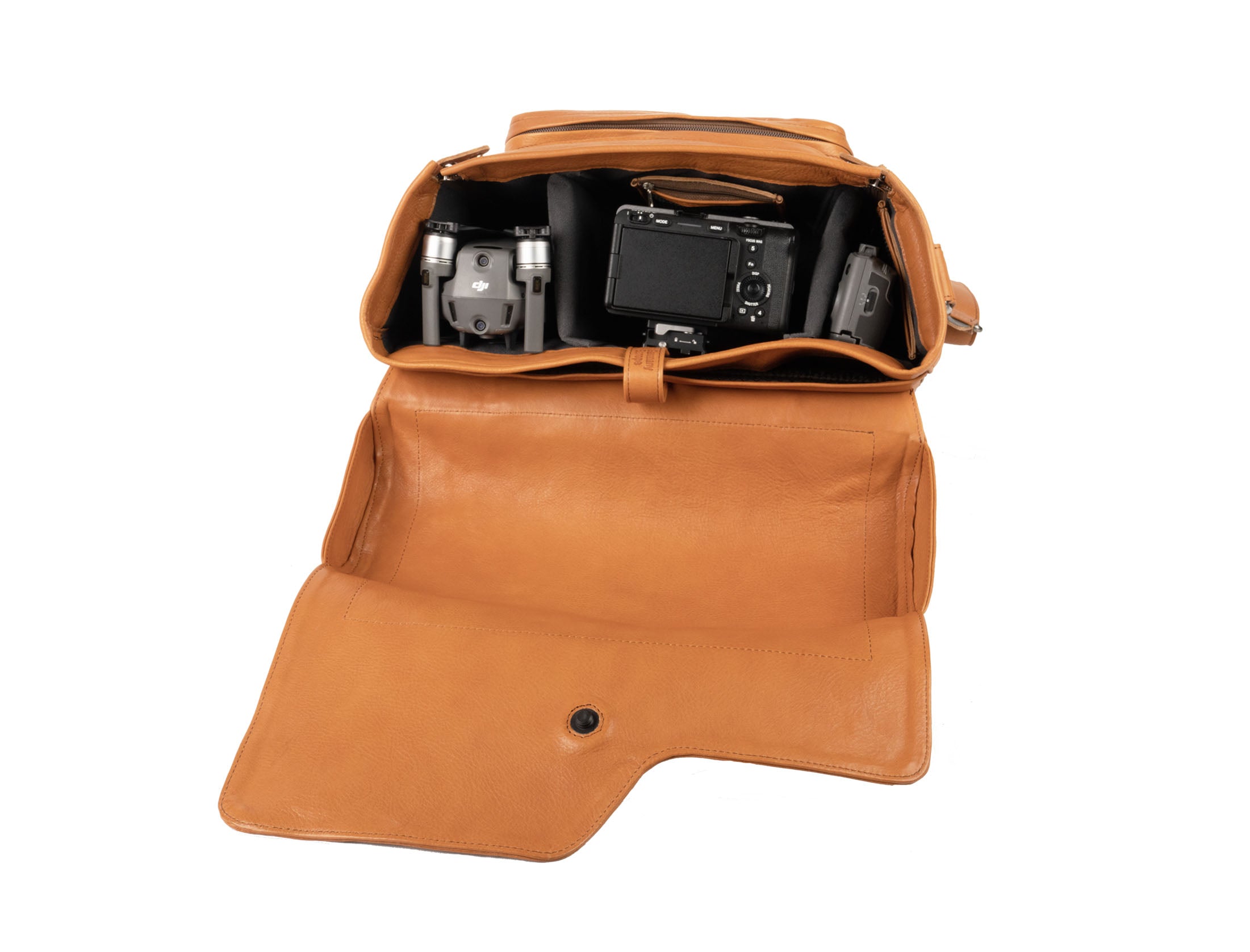 La bandolera de piel más grande, incluso utilizable con DSLR + objetivo zoom 70-200mm y Macbook Pro de hasta 16 pulgadas.