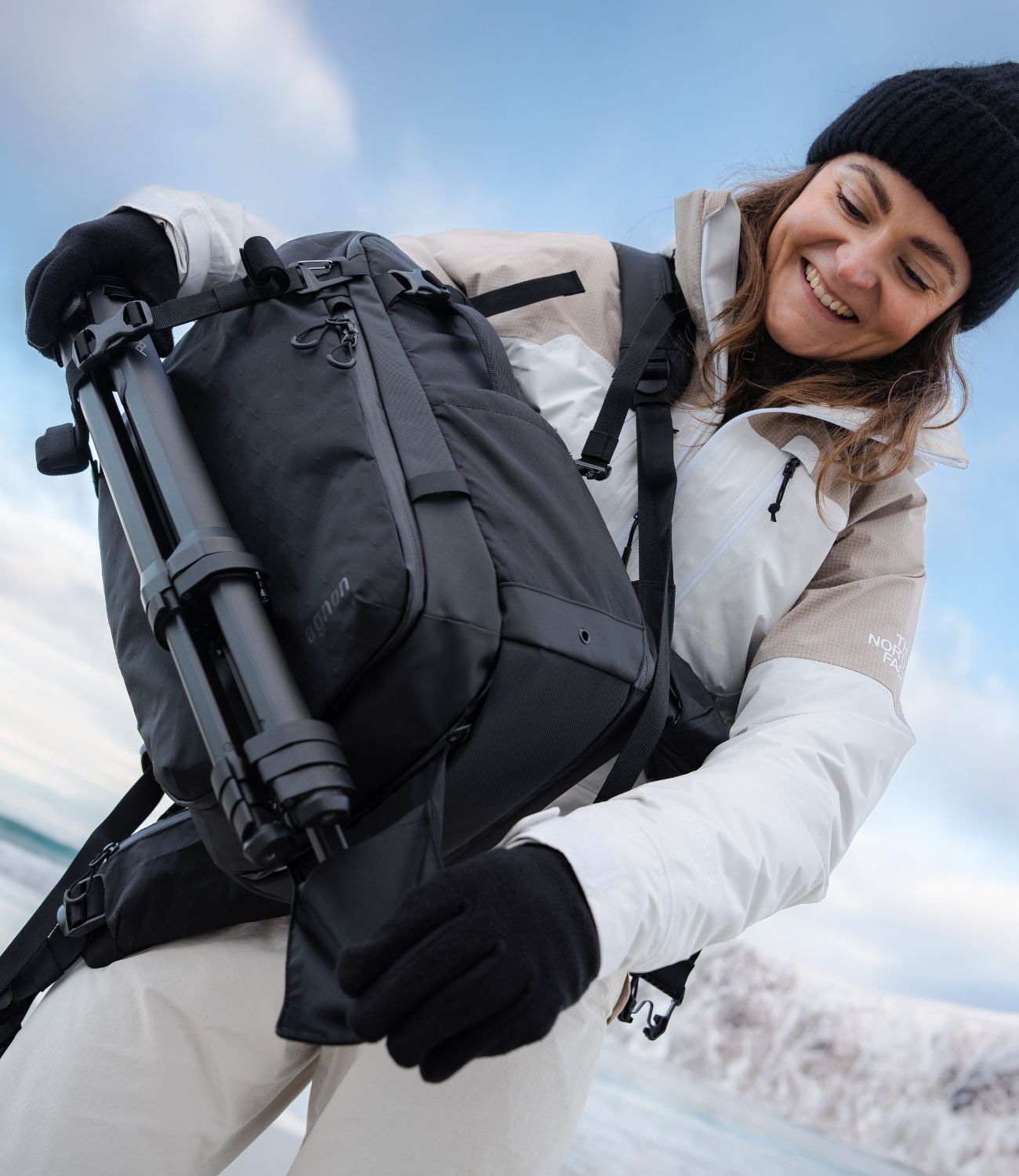 Des porte-bouteilles/trépieds sont disponibles des deux côtés du sac à dos. Si vous souhaitez transporter votre trépied au centre, un support extensible est disponible dans le fond. Vous pouvez également fixer la sangle multifonctionnelle à l'avant du sac à dos.