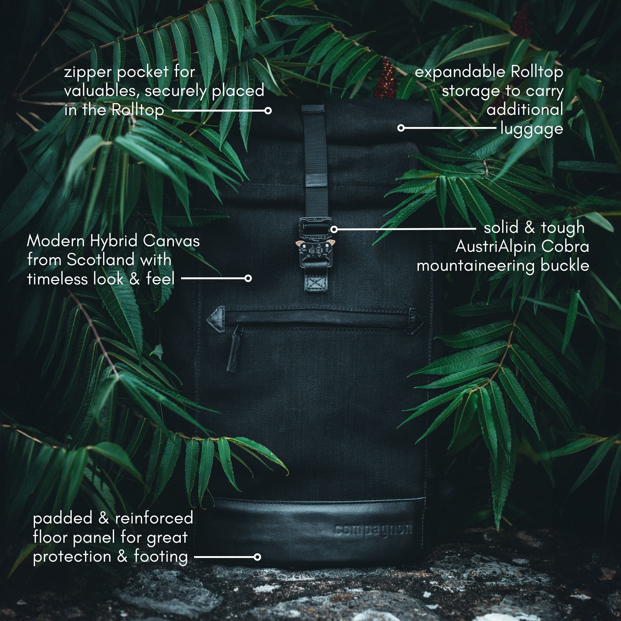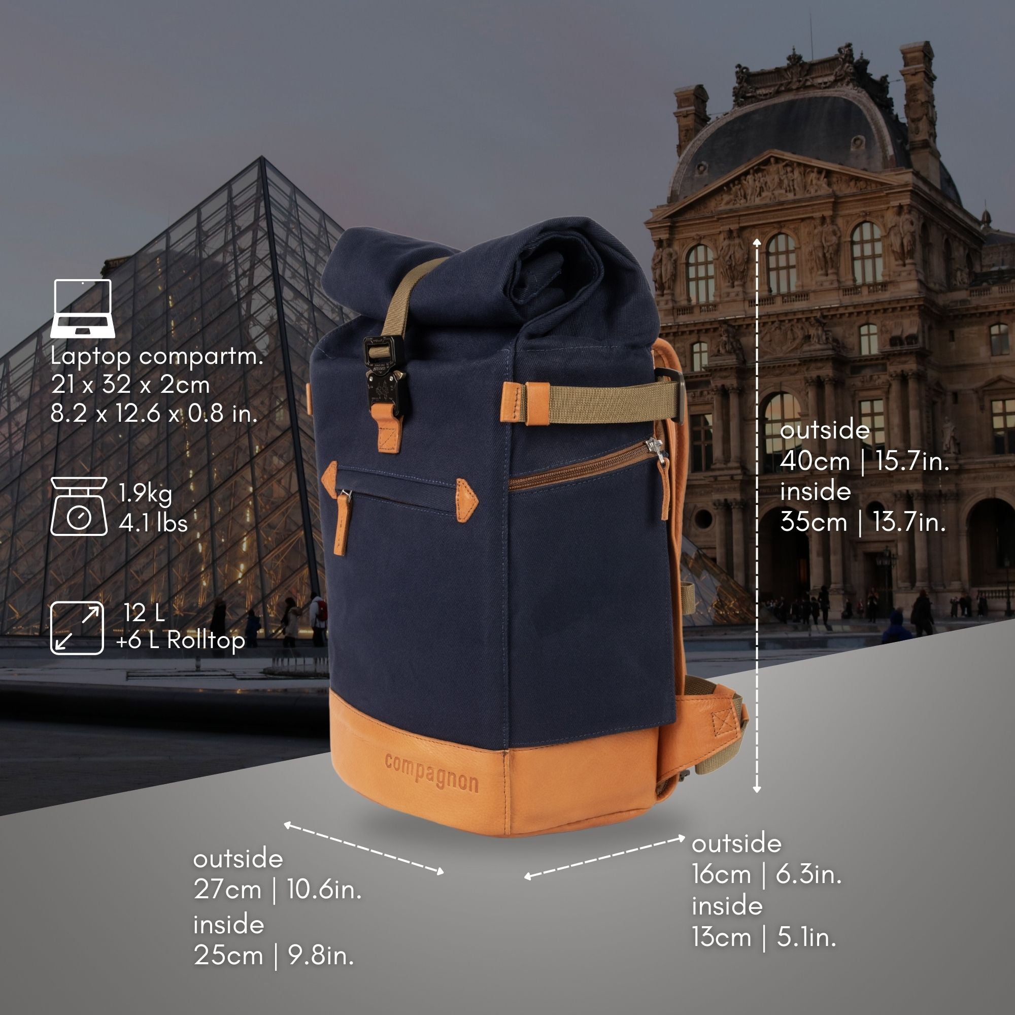 Pour tes voyages, il est adapté à la cabine et avec le rolltop supplémentaire, son utilité pratique au quotidien est énorme. Que ce soit pour les loisirs, les journées au bureau ou les projets créatifs.