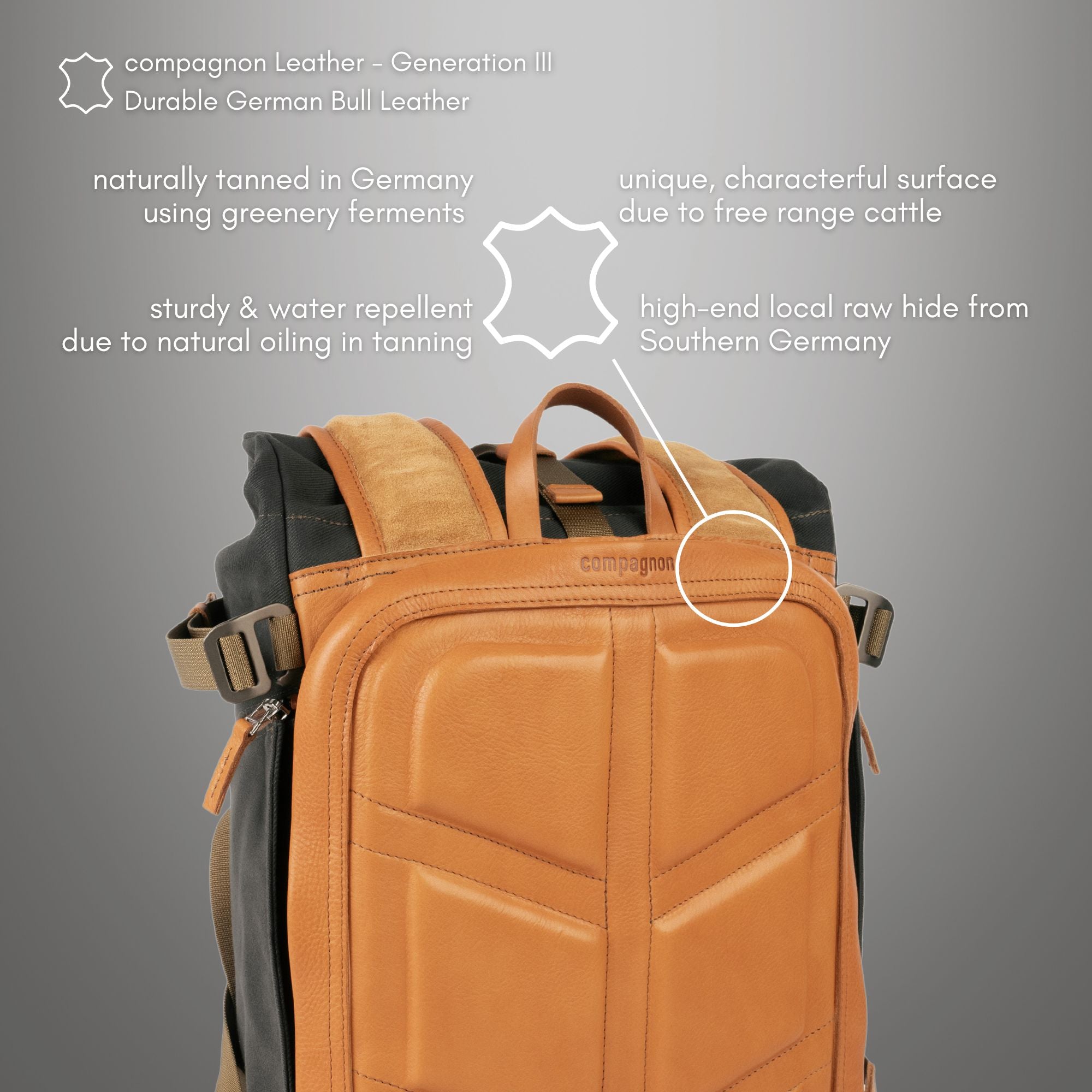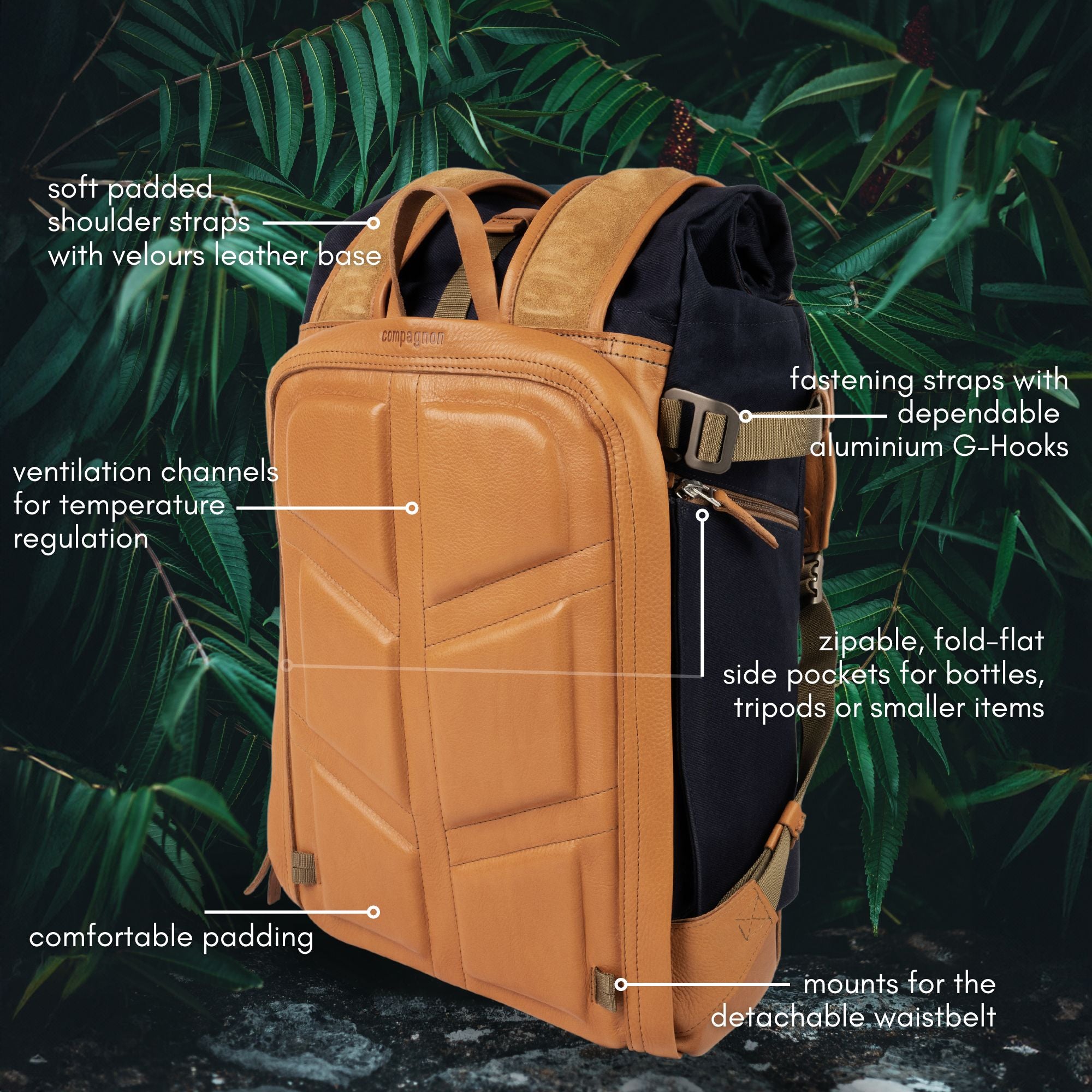 Le cuir compagnon tanné naturellement dans le sud de l'Allemagne est très spécial. Le toucher, l'aspect et la durabilité sont fabuleux et conviennent parfaitement aux amateurs de cuir. Le confort est également très bien assuré, car le panneau dorsal et les sangles sont confortablement rembourrés. Au fur et à mesure que tu t'inscris, les contours s'adaptent à toi.